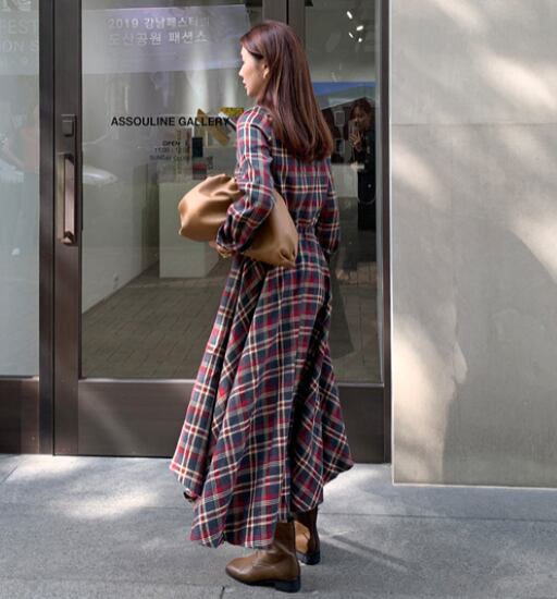 チェック柄が可愛いシャツワンピース。