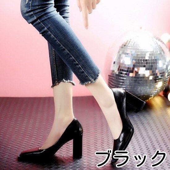 パンプス 太ヒール レディース ヒール ハイヒール スクエアトゥ パンプスヒール フェイクレザー チャンキーヒール 太ヒールパンプス パーティー メタリック レディースパンプス レディースシューズ