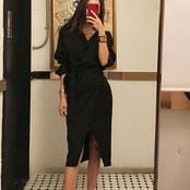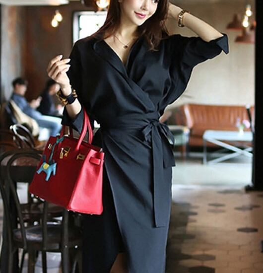 ミドル丈ワンピース レディース ワンピース カシュクールワンピース ウエストリボン Vネック ハイウエスト 無地 カジュアル お出かけ おしゃれ きれいめ 黒 ブラック ワンピ 女性 カシュクール