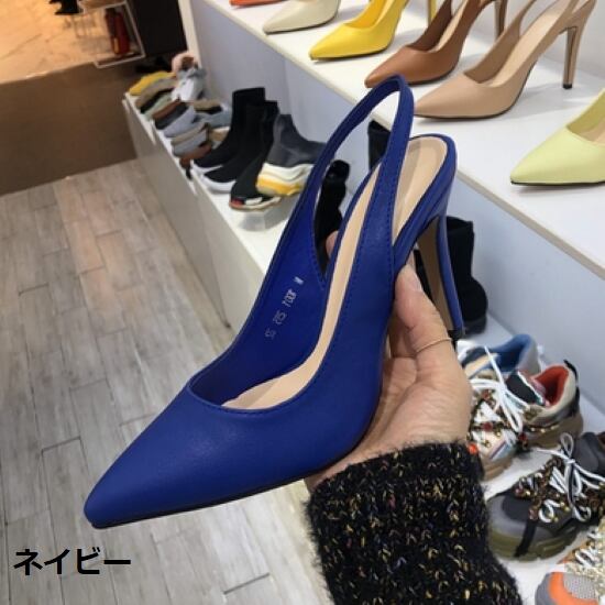 パンプス レディース 靴 シューズ スリングバックパンプス ポインテッドトゥ ハイヒール 美脚 脚長 シンプル 無地 カジュアル お出かけ おしゃれ きれいめ カラー豊富 スティレットヒール PU
