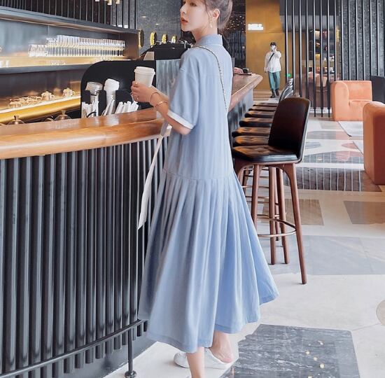 シャツワンピース レディース ワンピース 半袖ワンピース ミドル丈ワンピース ポロ襟 ボタン プルオーバー 爽やか 春夏 カジュアル お出かけ おしゃれ 配色デザイン シャツワンピ 女性 ワンピース