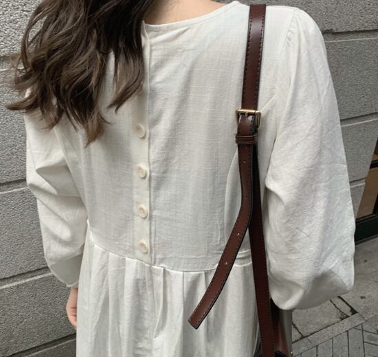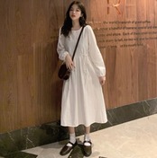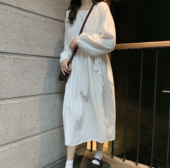 シフォンワンピース レディース ワンピース 長袖ワンピース ミドル丈ワンピース ラウンドネック シンプル 無地 カジュアル フェミニン お出かけ ホワイト 白 プルオーバー 女性 春夏 シフォンワンピ