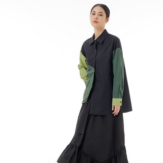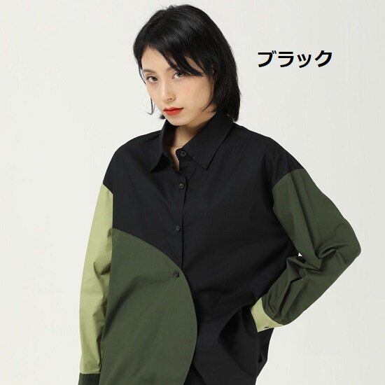 シャツ 長袖 コントラストカラー レディース カジュアル 長め丈 ゆったり 大きめ ブラウス カジュアル 襟付 襟あり チュニック 秋服 秋色 春秋 アシンメトリー シャツ 長袖 コントラストカラー