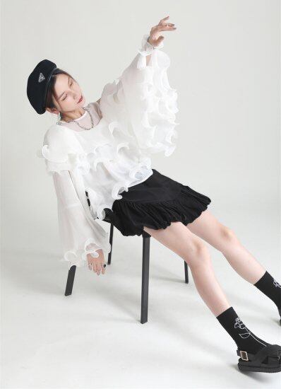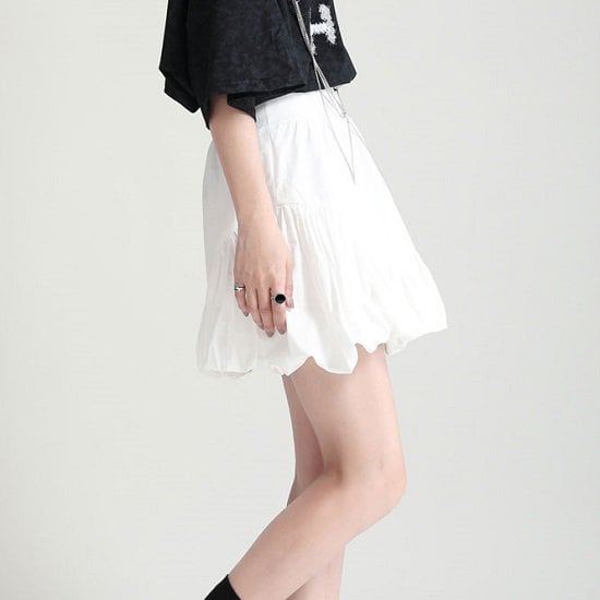 ミニスカート 裾フリル バルーンスカート スカート ボトムス ミニ丈 ハイウエスト ボリュームスカート ミニスカ 膝上 ショート丈 フレア フェミニン ミニスカート 裾フリル バルーンスカート