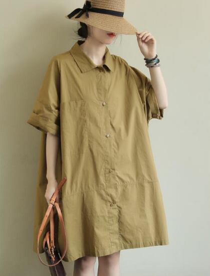 膝丈ワンピース レディース ワンピース シャツワンピース 半袖ワンピース シンプル 無地 フロントボタン 襟あり ポロ襟 カジュアル お出かけ ゆったり ルーズ 体型カバー ポケット シャツワンピ