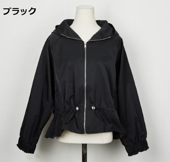 ウインドブレーカー レディース ジャケット 羽織 ライトアウター ショートコート 長袖 カジュアル お出かけ 無地 フロントジッパー フード付き ウエスト絞り 軽量 春秋 ボリューム袖 ショート丈