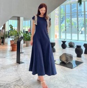 ロングワンピース レディース ワンピース フレンチスリーブ シンプル 無地 ラウンドネック ハイウエスト プルオーバー Aラインスカート カジュアル お出かけ リゾート おしゃれ ロング丈 春夏