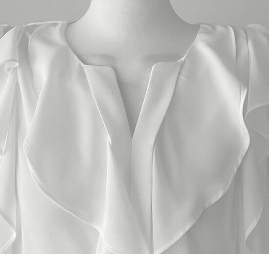 ボリュームたっぷりのフリルデザインが女性らしいブラウス。