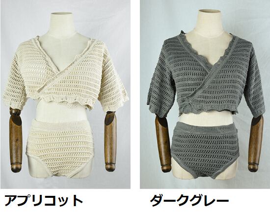 ビキニ レディース 水着 2点セット 上下セット 半袖 クロシェ編み ニット Vネック ハイウエスト 二の腕カバー カジュアル 可愛い おしゃれ 夏 海 プール スイムウェア ビーチウェア リゾート