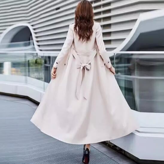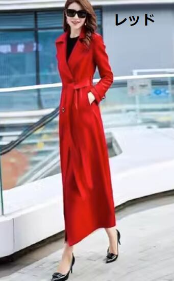 ロングコート レディース コート 羽織 アウター ロング丈 ウエストベルト 長袖 フロントボタン ダブルブレスト スーツ襟 スリムフィット カジュアル お出かけ おしゃれ きれいめ 通勤 オフィス