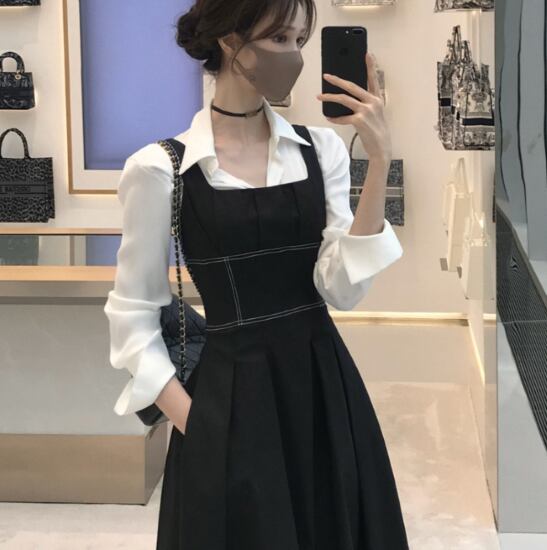 Aラインスカートがふんわり広がる一着。