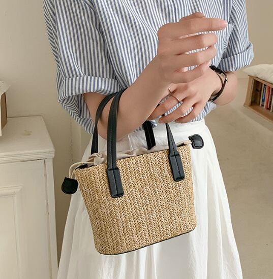 ストロー素材とPUの組合わせがおしゃれなバッグ。