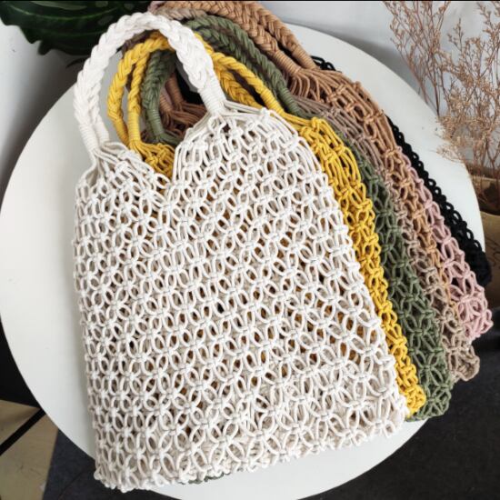 ハンドバッグ レディース メッシュバッグ 鞄 かばん トートバッグ インナー付き 巾着 内袋付き 綿 コットン エコバッグ ソフト カジュアル お出かけ おしゃれ カラー豊富 ネットバッグ 編みバッグ