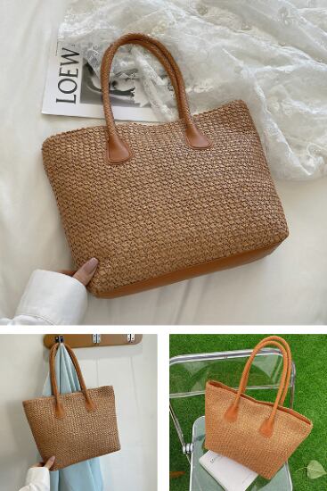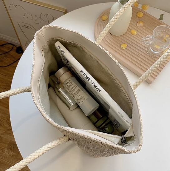 トートバッグ レディース ハンドバッグ 鞄 かばん シンプル 無地 ストローバッグ 夏 海 ビーチ リゾート バカンス ジッパー 大容量 カジュアル お出かけ トートバッグ レディース ハンドバッグ
