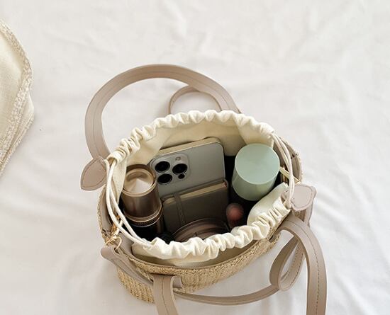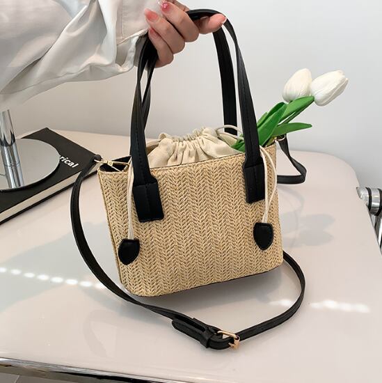 ストロー素材とPUの組合わせがおしゃれなバッグ。
