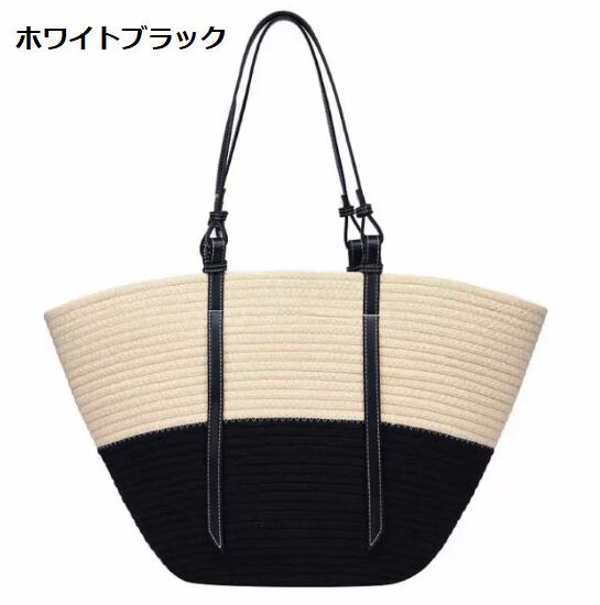 トートバッグ レディース 肩掛けバッグ 大容量 ストローバッグ 織バッグ かごバッグ カゴバッグ シンプル 無地 配色デザイン ビーチ 海 リゾート バカンス カジュアル お出かけ おしゃれ 鞄