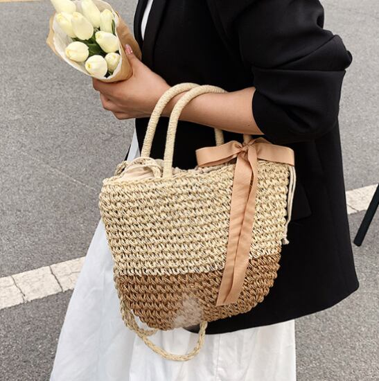 ハンドバッグ レディース ショルダーバッグ かごバッグ カゴバッグ 斜め掛けバッグ 肩掛けバッグ ナチュラル リボン シンプル 無地 ストローバッグ カジュアル お出かけ 巾着 内ポケット 女性