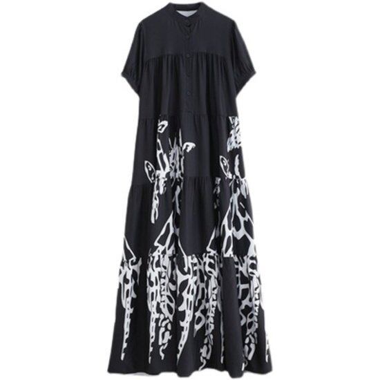 ワンピース キリン柄 ロング丈 ワンピース おしゃれ かわいい 大人 ワンピース 春夏 20代 30代 40代 ゆったり 体型カバー ふんわり ワンピース ドレス マキシ丈 ブラック お出かけ