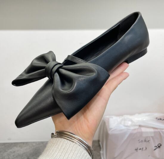 バレエシューズ レディース 靴 シューズ パンプス ローヒール フラットシューズ ポインテッドトゥ 大きめリボン 履きやすい 歩きやすい 疲れにくい カジュアル お出かけ おしゃれ PU 女性 無地