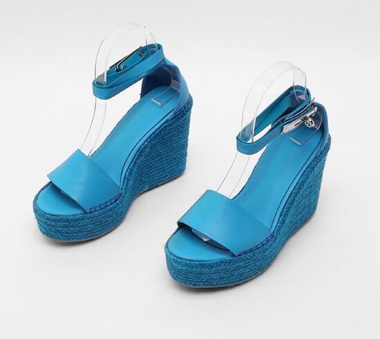 夏らしい鮮やかなカラーのウエッジソールサンダル。