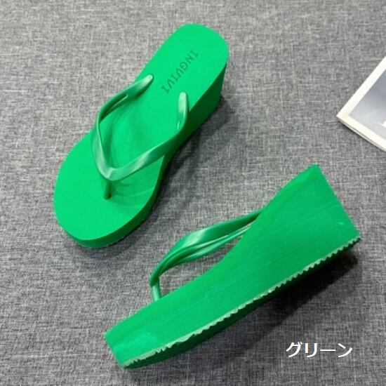 ウエッジソールサンダル レディース 靴 シューズ サンダル 厚底 トングサンダル ビーチサンダル シンプル 無地 ハイヒール 美脚 脚長 カジュアル お出かけ おしゃれ リゾート 夏 ウエッジソール