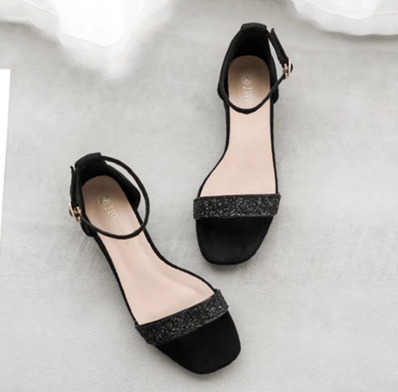 サンダル レディース 靴 シューズ ローヒール 太ヒール チャンキーヒール ラインストーン ラメ きらきら アンクルストラップ 歩きやすい 疲れにくい オープントゥ カジュアル お出かけ おしゃれ