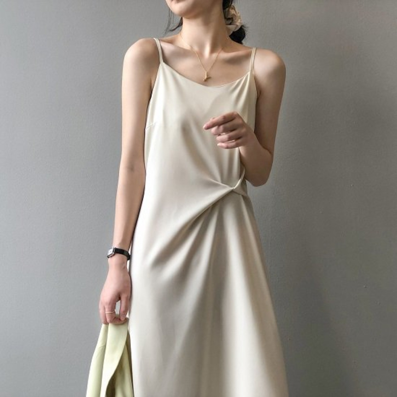 キャミワンピ ドレス サテン ワンピース ミドル丈 ミモレ丈 膝下 キャミソール キャミソールドレス 夏 リゾート とろみ素材 セクシー 大きいサイズ きれいめ 無地 キャミワンピ ドレス サテン
