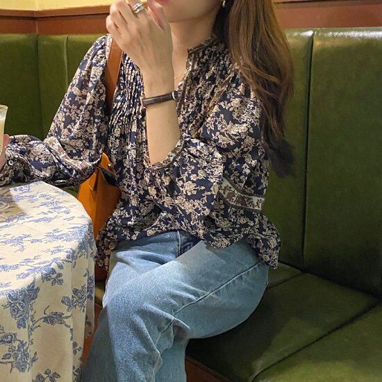 ボタニカル柄がおしゃれなブラウス。