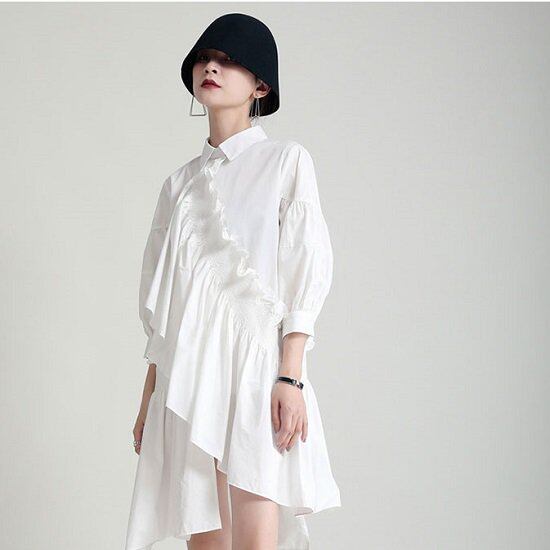 アシンメトリーで個性的なシャツワンピ。