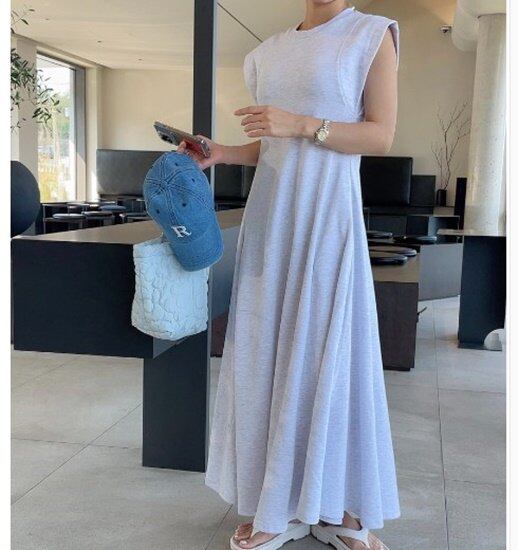 夏のカジュアルドレスは着心地が良い綿混紡でロング丈が一番使い勝手が良いですね。