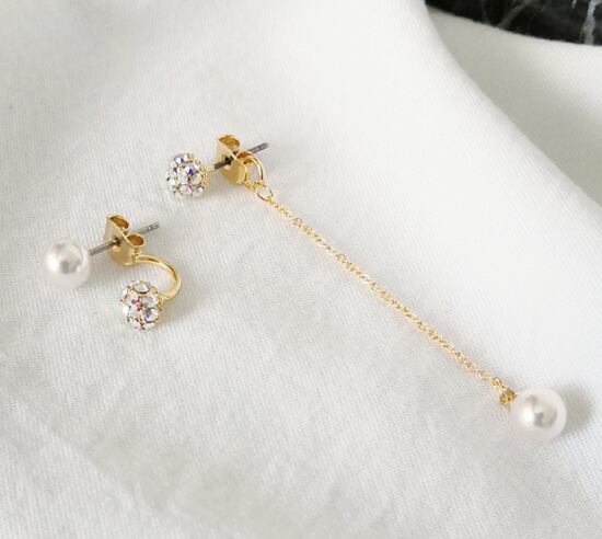 ピアス レディース アクセサリー アシンメトリー パール ラインストーン ロングピアス ドロップピアス きれいめ チェーン エレガント カジュアル おしゃれ 揺れる パーティー お呼ばれ 結婚式