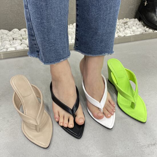 トングサンダル レディース 靴 シューズ ウエッジソールサンダル 美脚 脚長 カジュアル お出かけ おしゃれ PU ヒール 履きやすい 歩きやすい ポインテッドトゥ 夏 リゾート シンプル 無地 女性
