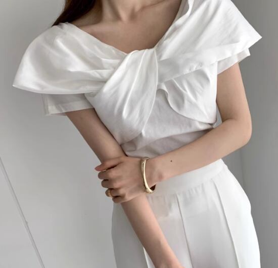 半袖Tシャツ レディース トップス カットソー Tシャツ 半袖 ツイストデザイン 個性的 おしゃれ カジュアル お出かけ きれいめ 無地 エレガント 白 黒 ホワイト ブラック プルオーバー 女性