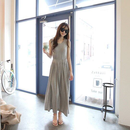 ロングワンピース ノースリーブ ウエストマーク ラウンドネック ロングワンピ ロング丈 フレア フレアワンピース 大きいサイズ 夏 タンクトップ ロングワンピース ノースリーブ ウエストマーク