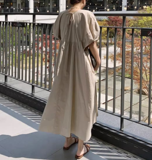 ふんわりパフスリーブとバックリボンが女性らしく可愛い。