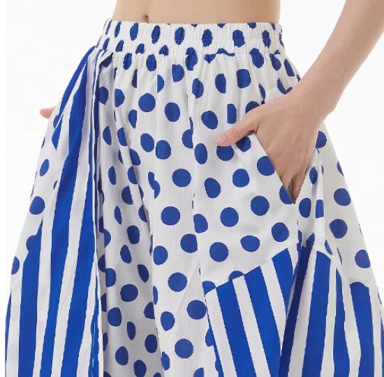 ロングスカート レディース スカート ボトムス ストライプ柄 水玉 ドット柄 切り替え パッチワークスカート カジュアル お出かけ おしゃれ 華やか 可愛い ポケット ウエストゴム ロング丈 スカート