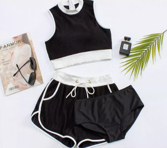 ビキニ レディース 水着 タンキニ 配色デザイン バイカラー コントラストカラー ショートパンツ 3点セット スリーピース カジュアル おしゃれ スポーティー 海 ビーチ プール 海水浴 スイムウェア