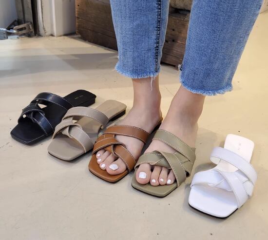 フラットサンダル レディース サンダル 靴 シューズ ぺたんこサンダル ねじりストラップ オープントゥ スリッパ つっかけ スクエアトゥ 履きやすい 歩きやすい 疲れにくい カジュアル お出かけ 女性
