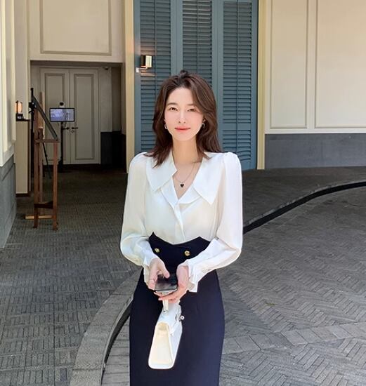 シフォンシャツ レディース シャツ トップス シフォンブラウス 長袖ブラウス 襟あり キャンディスリーブ カジュアル お出かけ おしゃれ きれいめ エレガント 無地 プルオーバー オフィス OL 女性