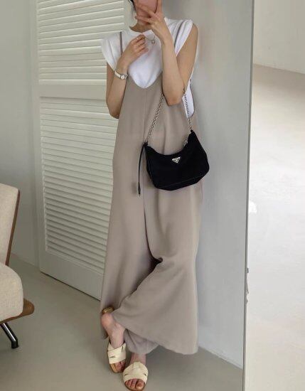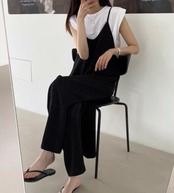 サロペット レディース オールインワン ロングパンツ ワイドパンツ ジャンプスーツ キャミソール ゆったり シンプル 無地 ラフ ナチュラル 体型カバー ルームウエア カジュアル オールシーズン