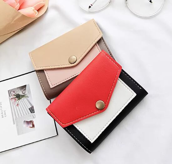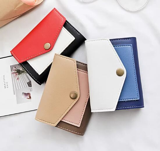 折りたたみ財布 レディース 財布 三つ折り財布 ウォレット バイカラー 配色デザイン カード収納 カードスロット カジュアル お出かけ おしゃれ 牛革 レザー コンパクトウォレット 小さめ 封筒型