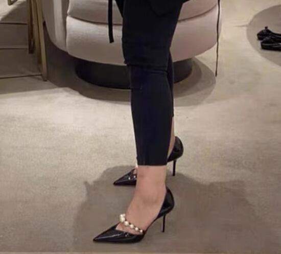 パーティーシューズ レディース パンプス 靴 シューズ パール 装飾 ポインテッドトゥ ハイヒール スティレットヒール 美脚 脚長 きれいめ エレガント おしゃれ お呼ばれ フォーマル パーティー