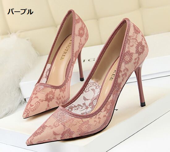 パーティーシューズ レディース パンプス 靴 シューズ シースルー メッシュ レース ポインテッドトゥ ハイヒール ピンヒール きれいめ エレガント フォーマル お呼ばれ 美脚 脚長 女性 パンプス