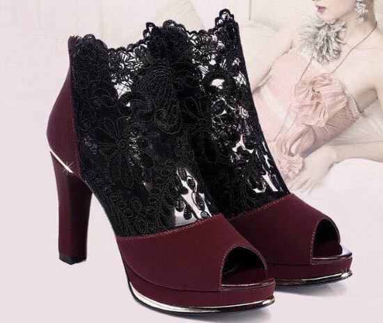パーティーシューズ レディース ブーツ 靴 シューズ レース シースルー ハイヒール 美脚 脚長 オープントゥ バックジッパー スエード 肌見せ きれいめ エレガント おしゃれ 個性的 フォーマル