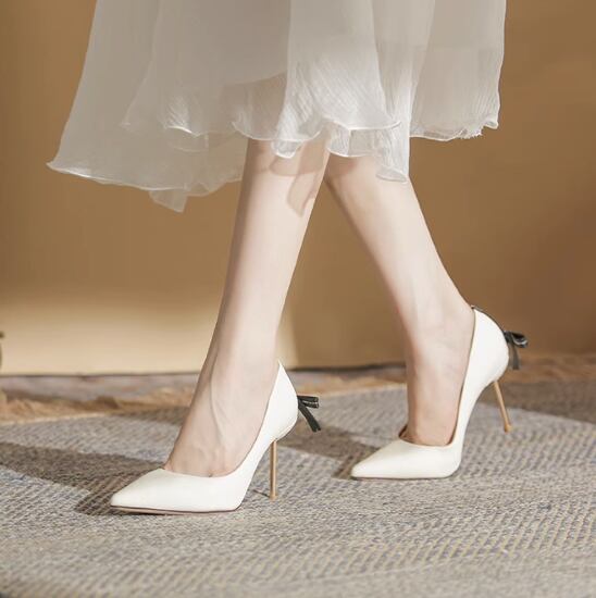 パーティーシューズ レディース 靴 シューズ ポインテッドトゥ シンプル 無地 リボン ピンヒール 美脚 脚長 シンプル きれいめ エレガント お呼ばれ フォーマル おしゃれ ブラック アプリコット