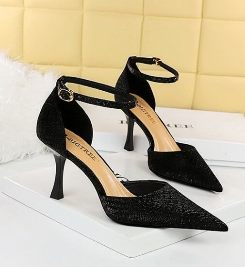 パーティーシューズ レディース パンプス 靴 シューズ パイソン柄 ヘビ柄 型押し アンクルストラップ ポインテッドトゥ スティレットヒール 美脚 脚長 きれいめ エレガント お呼ばれ フォーマル