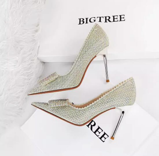 パーティーシューズ レディース パンプス レディース 靴 シューズ ラインストーン きらきら リボン りぼん ハイヒール ピンヒール ポインテッドトゥ きれいめ エレガント 美脚 脚長 フォーマル