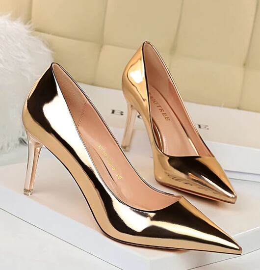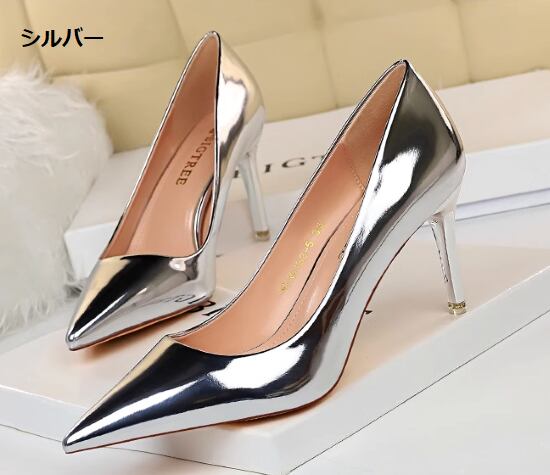 パーティーシューズ レディース パンプス 靴 シューズ メタリック シンプル 無地 ポインテッドトゥ ハイヒール ピンヒール 美脚 脚長 きれいめ エレガント お呼ばれ フォーマル パーティー 女性