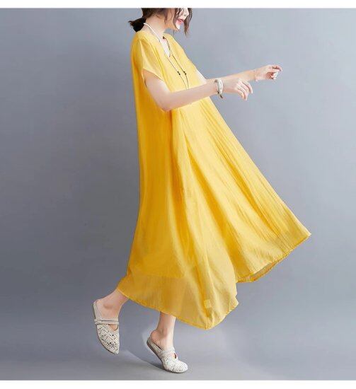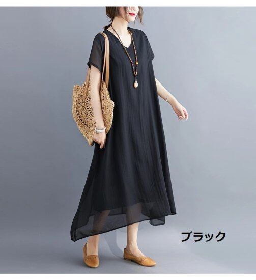 ワンピース レディース ロングワンピース Vネック 半袖 Aライン 無地 薄手 イレギュラーヘム フレア オーバーサイズ ゆったり 体型カバー きれいめ カジュアル リゾート バカンス 休日 夏