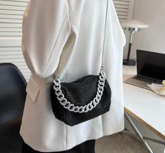 ハンドバッグ レディース バッグ 鞄 かばん ショルダーバッグ 肩掛けバッグ 斜め掛けバッグ 2WAY クリスタル きらきら チェーン コンパクト 個性的 カジュアル お出かけ おしゃれ きれいめ